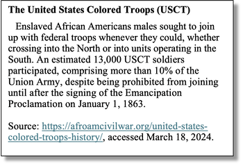 [6] https://www.slavestosoldiers.org/us-colored-troop-veterans/infantry-regiments/44th-us-colored-infantry, accessed March 17, 2024; Clarence Mohr, “Black Troops in Civil War Georgia,” New Georgia Encyclopedia,