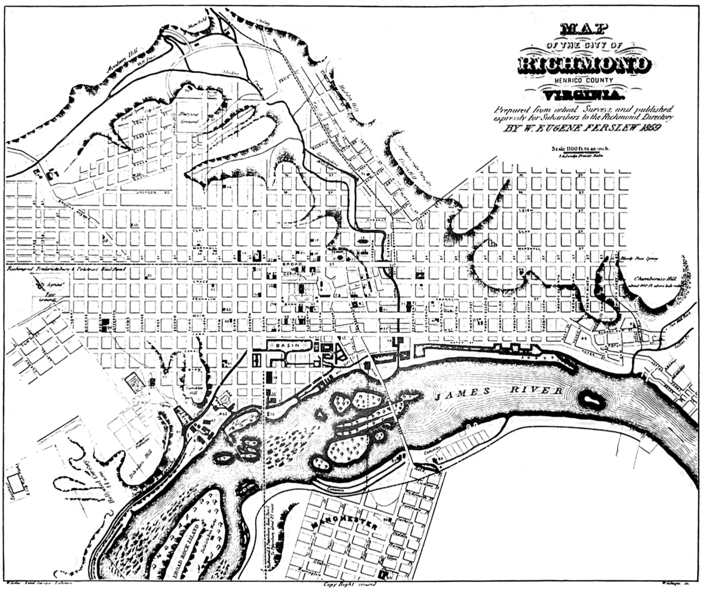 - 1859 Map of the City of Richmond, W. Eugene Ferslew, found in Michael B. Chesson, Richmond after the War, Virginia State Library [today the Library of Virginia], Richmond, Virginia, 1981.