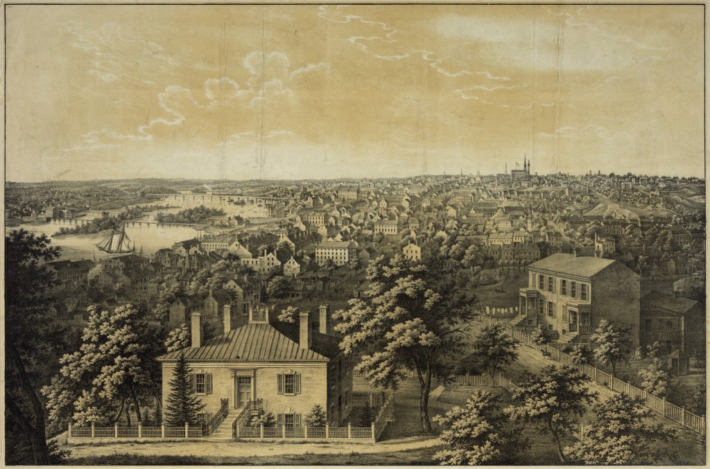 Top: “View of Richmond from the church hill” (c. 1850) by Casimir Bohn. The house in the foreground is often called the Adams-Taylor house but was more likely built for speculator James Smith in 1812, according to the blog Urban Scale Richmond.