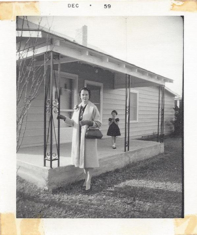 Looking back at old pictures and studying the dates that were printed on them when they were printed, it can be seen that Daddy accomplished all this at a record rate. Pictures dated 1959 show the house with the side addition, and the green aluminum, and the corrugated tin roof. It also shows that Daddy had already built the front porch. (Daddy seemed to have had a list of things, probably influenced by Momma, he needed to have in order to have the perfect house.)