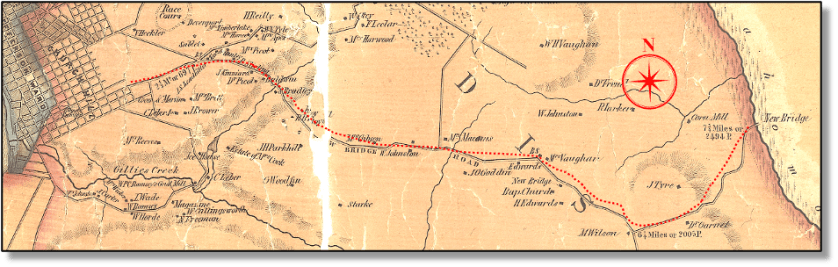 In June 1816, Walter Shelton announced plans at the Eagle Tavern in Richmond to raise capital for building a Chickahominy Turnpike. It would run from the termination of 25th Street, near his home on Richmond Hill, to Freeman’s Tavern (Figure 3).